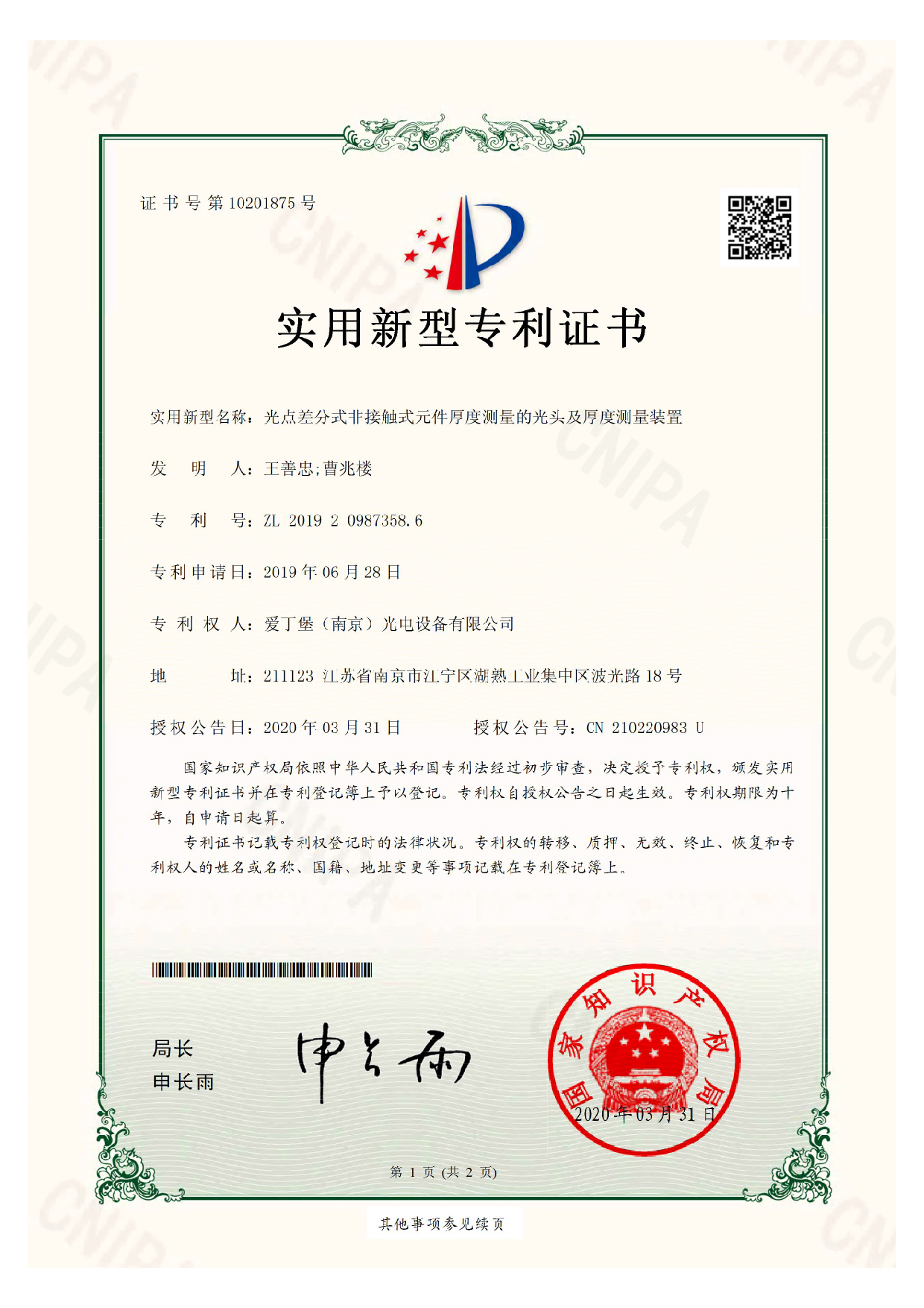 光點差分式非接觸式元件厚度測量的光頭及厚度測量裝置